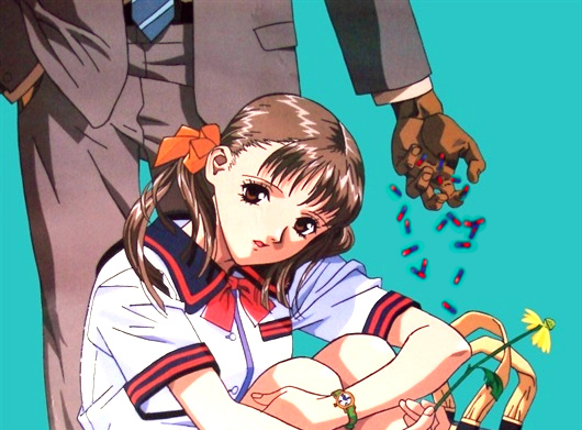 During a rooftop meeting with her stepfather, he has grown cocky and sees Ayana as his obedient sex slave, ambivalent to the rage and hatred she truly feels for him. When he embraces her, she manages to steal his revolver and kill him. Freed from the terrible clutches of her stepfather, Ayana is finally able to start again with her life and reconciles with her boyfriend. It seems like her nightmare has finally come to an end, and things look hopeful when she is waiting to meet him after school; that i,s until her stepfather’s dealer friends approach her. The episode ends bleakly with the sounds of them once again r**ing Ayana with her uniform strewn across the floor next to a bottle of Yellow Star pills.