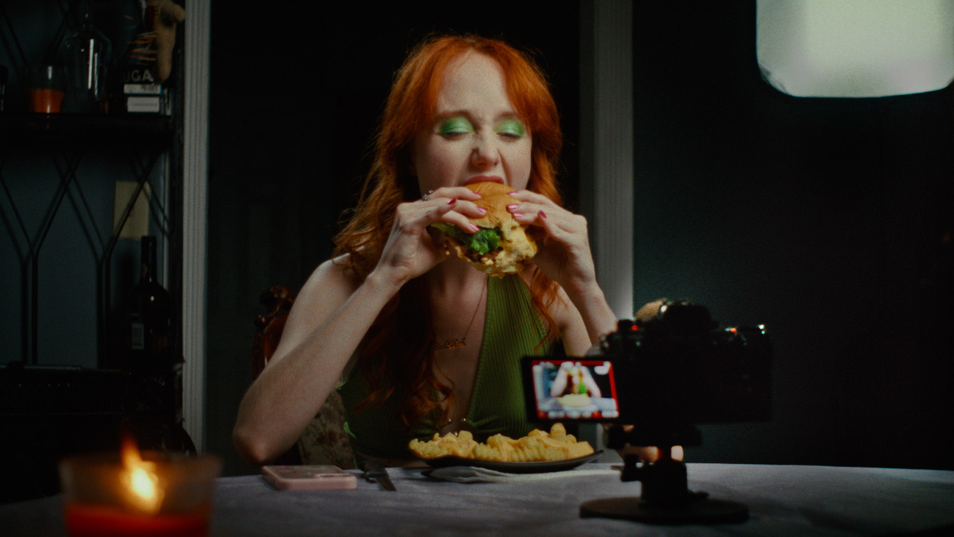 Cannibal Mukbang kicks off with a truly unconventional meet-cute: social media influencer and mukbang artist Ash knocks introverted horror movie reviewer Mark (Nate Wise) unconscious. After she takes him home and feeds him upon awakening, Mark makes a hasty exit. Yet, once free, he finds he can’t stop thinking about Ash—and disturbingly, can no longer stomach regular food. While Mark is painfully shy, his hyper-toxic, alpha male brother Maverick (Clay von Carlowitz) pushes him to reconnect with her.
