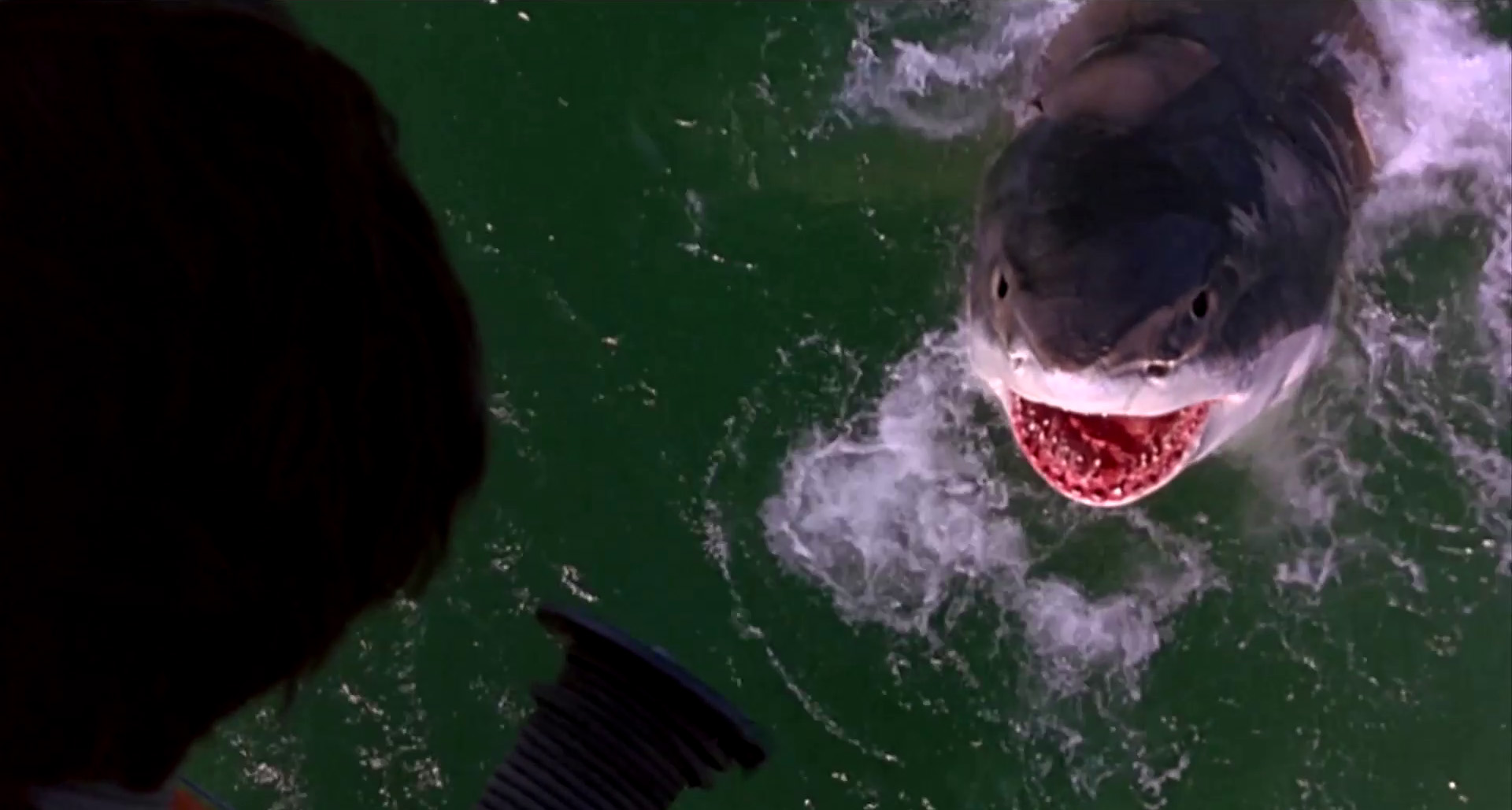 More accurately classified as a rip-off than a continuation of the Jaws series, Cruel Jaws’ narrative is completely isolated from the recurring plot elements associated with the series–lacking any connection to the Brody family, Amity Island, or any of the previous locales featured. Instead, the film utilises directly lifting footage from all four previous films (along with other shark attack films and stock footage), as well as derivatively re-creating scenes from these films to tenuously forge a link.